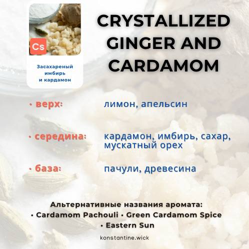 Используйте засахаренный имбирь и кардамон, чтобы создать поднимающую настроение коллекцию свечей, мыла, скрабов, лосьонов и тростниковых диффузоров с этим превосходным ароматом.