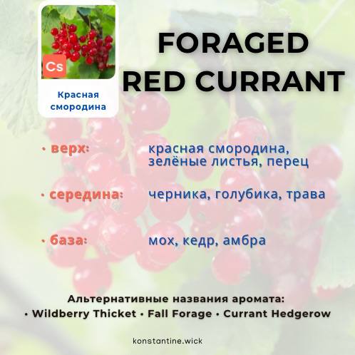 Foraged Red Currant — это ягодный аромат со сложными зелеными и древесными гранями, который избегает приторной сладости. Он отлично справляется со свечами, wax melts и рум-спреями, а также создает изысканное мыло, лосьоны и скрабы.