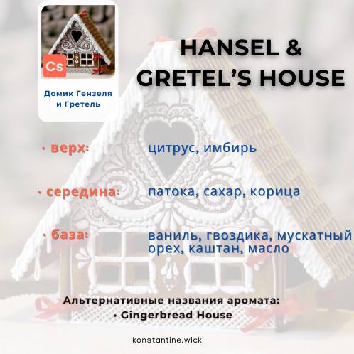 Дом Гензеля и Гретель отражает домашнюю сущность пряничных домиков. Это гурманское ароматическое масло, предназначенное для детей всех возрастов, сочетает в себе ноты имбиря, корицы, сахара и ванили, создавая восхитительно пахнущее лакомство. Этот восхитительный аромат идеально подходит для праздничной коллекции свечей и wax melts, мыла, скрабов или пенящихся бомб для ванны.
