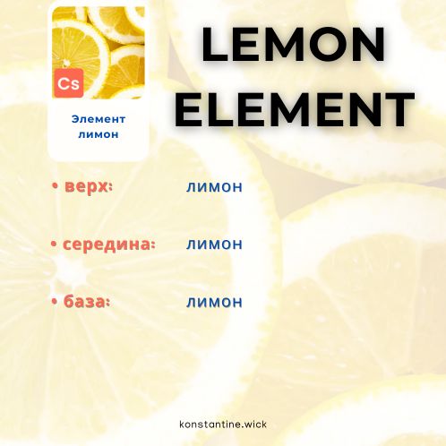 Lemon Element лучше всего сочетается с ароматами из семейства цитрусовых, цветочных, морских/озоников и гурманов.