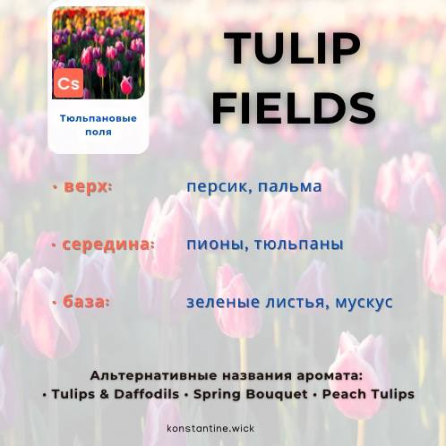 Такое же яркое, как знаменитые тюльпановые поля в Голландии, это весеннее ароматическое масло представляет собой сочное фруктово-цветочное сочетание. Верхние ноты персика и зеленой пальмы добавляют сладкий контраст сердцу тюльпанов и цветущих пионов. Ароматные зеленые листья базы углублены оттенком мускуса, чтобы окутать этот игривый аромат, как лентой вокруг букета. Tulip Fields идеально подходит для свечей, wax melts. Или создайте свою собственную линию для ванны и тела с мылом, скрабами и лосьонами.